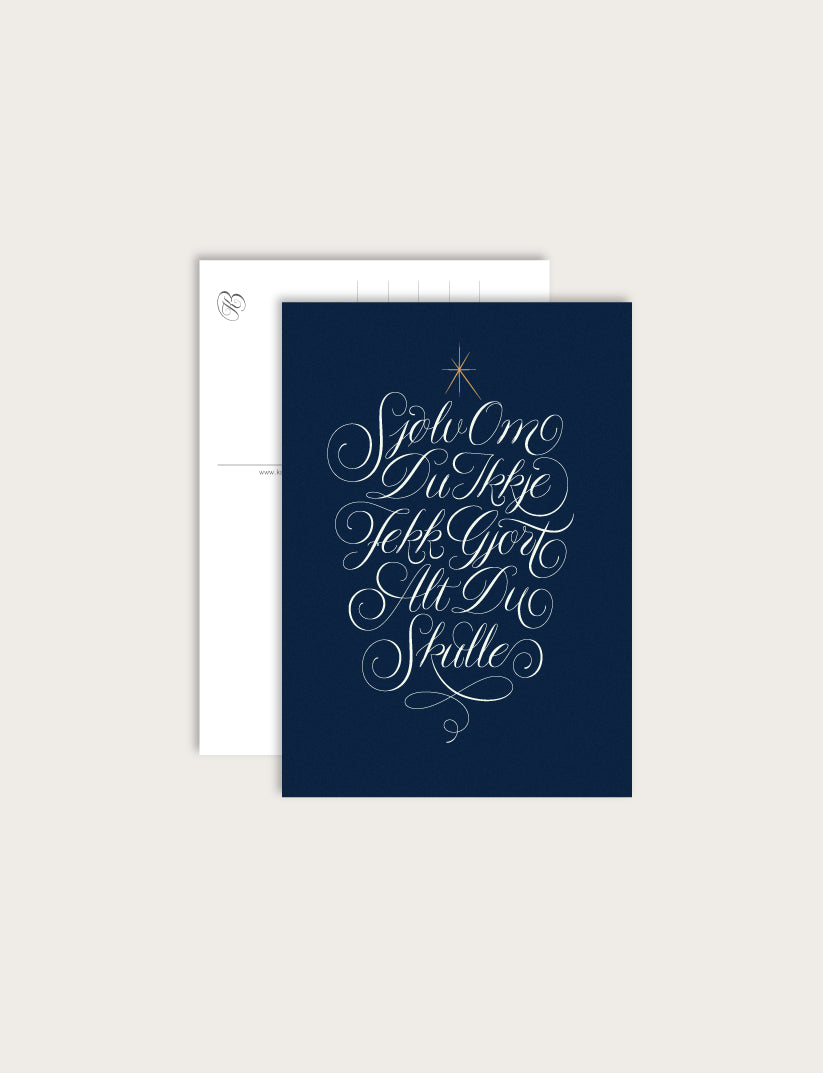 Julekort designet og håndtegnet av meg. Teksten er lånt fra diktet «Jul, trass alt» av Ruth Lillegraven.